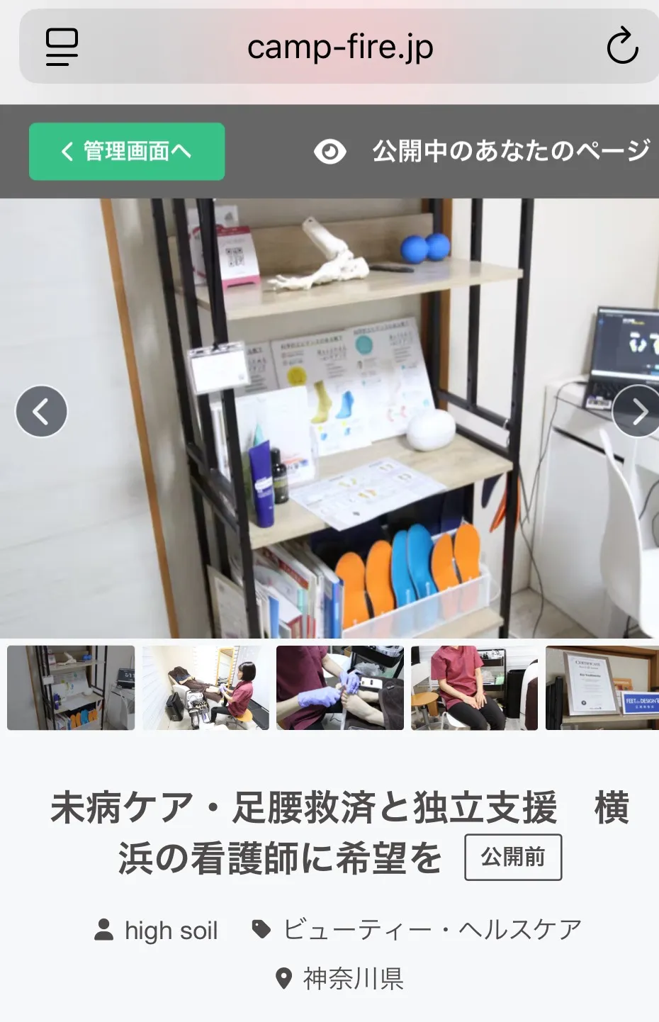 キャンプファイヤー公式サイトより→ヘルスケア→神奈川県で検索🔍